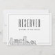 This unique wedding reserved sign is for a marriage taking place in the beautiful city of Baltimore and features a deco outline of the city skyline along with a spot for the seat occupant's name.