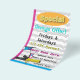 This is a fun flier design to draw attention to your special salon offer. Enter your own text so it fits your business. Also change the background color, and/or add an image to the back to make it more appropriate for you.