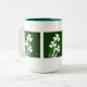 White shamrocks on a bed of Irish Green decorate this two tone 15 oz Mug to help you celebrate St. Patrick's Day.