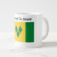The mug displays the national colors of the St Vincent and the Grenadines flag with the three diamonds in the middle.