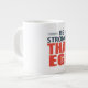 This mug design features a motivational quote, "BE STRONGER THAN EGO," displayed in a bold and impactful layout. The text is divided into three lines, with "BE STRONGER" written in a dark blue, bold sans-serif font, conveying a sense of seriousness and focus. Below, "THAN EGO" is highlighted in a bright red, distressed font, adding texture and visual interest. The contrasting colors and typography styles make the message stand out, encouraging resilience and self-improvement. The design's clean yet rugged aesthetic makes it perfect for a mug, inspiring positivity with every use.