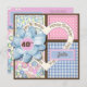 This pretty quilted invitation allows you to put in the age of the birthday girl. 16, 30, 50, the card is suitable for any age. Scrapbooked quilt squares with a heart over top, this birthday card is cheery and pretty. A lovely mix of pink, blue, cream and brown makes this personalized birthday party invitation a unique and special addition to your party planning.