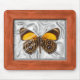A tromp l'oeil look of a specimen box with satin lining. A beautiful butterfly sits under the glass.