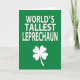 This design shows distressed white lettering centered on a deep emerald green background, reading “WORLD’S TALLEST LEPRECHAUN” in thick, sans-serif capitals. The words sit stacked in the middle, with the bright white text standing out sharply against the green and drawing you in like a cheeky challenge between friends 💚. A white shamrock rests near the bottom, acting like a quiet sign-off that balances the heavy type above ☘️. Fine speckles and mottling run through both the letters and the shamrock, giving them a slightly aged, printed-on look rather than a flat digital finish. The green field feels rich and saturated, setting a festive scene without any extra characters, just the confident statement and its lucky emblem. A faint shadow under the shamrock adds a small lift, making it seem gently raised from the background. The shamrock sits low and centered, crisp white with a soft, barely-there drop shadow against the emerald ground.