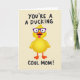 This card features a cute, round baby bird centered on a pale cream background, drawn in soft gradient yellow so it looks gently puffed up. The bird wears oversized purple glasses, and its wide eyes and slightly open beak give it an affectionate, teasing look, like it’s sharing an inside joke with someone it adores ❤️. A bright pink tongue peeks out, adding a flirty, friendly bit of cheekiness without feeling over the top. Beneath the fluffy body, small orange webbed feet sit close together, making the pose feel bashful and sweet. Thick black hand-drawn lettering curves around the character, with the message split above and below to frame the bird and guide your eye. The simple background leaves plenty of breathing room, so the bright accents—purple frames, pink tongue, and orange feet—stand out clearly 🌼. The lettering is black and slightly uneven in a casual way, while the bird’s yellow shading stays smooth and rounded, with the purple glasses sitting high across its face. The bird’s tongue is bright pink, the glasses are deep purple, and the tiny feet are orange against the creamy backdrop.