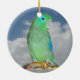 A spectacled parrotlet decorates this adorable all occasion ceramic ornament