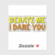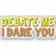 Debate me, I dare you sticker. A confident quote by an opinionated person who can argue their way through any oration discussion or competition. Cool bright yellow and orange text on this orator humor sticker for a speech and debate team. Have the confidence that you will win any argument.