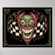 A grinning, green and red speed demon with checkered flags, with, "Speed Demon" text caption. For racing fans and folks who love to go fast. T-shirts, sweats, novelty gift wares.