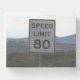 A wooden box sign featuring a photo of a speed limit sign indicating the limit is 80 mph.