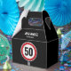 Customise your age for the perfect cars and drivers themed birthday party. Red round traffic speed sign with a modern graphic style.