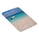 Magnet with a speedboat in the turquoise blue water of the mediterranean sea at the small, white beach of Cala Goloritze in the Gulf of Orosei, Sardinia, Italy.