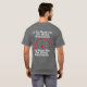My 11 yo wore adult XL (5’7” 165#). The 8yo is small framed. She wore adult small and tied it in the back. Grandma wore adult large with long sleeve shirt underneath. Tall girl adult medium. Dark haired male adult large. Good quality dark Heather gray, Gildan brand shirt. -it was next up from basic choice and cost about $20 per shirt. Not too thick or thin. Washed and dried well, no major shrinkage. Not see-through. Can wear a bra under it fine. Screen print is just as shown and well done, front and back.