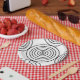 Large black hypnotic circle pattern that is whimsical and decorative.