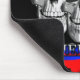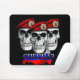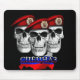 Mouse pad for computer with 3 Spetsnaz skulls and red beret with wording "Spetsnaz" spelled in Russian.
