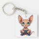 Sphynx Cat Holding Game Controller Keychain