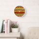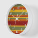 Colorful clock in spice colored stripes. Cardamom green, paprika orange, cayenne red, and mustard yellow colors.