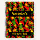 Colourful notebook printed with red chilli peppers, cactus plants and flames. Would be ideal as a recipe book. Great gift for chilli lovers, hot and spicy food fans, chefs and restaurant owners. You can personalise the notebook by adding your own name, and change the lower text (or delete is not required) to suit your requirements.