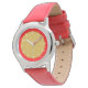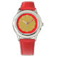 Decorate your wrist in style with this watch with a dual-tone red and gold face and white numbers.