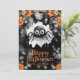 Custom photo Halloween card featuring a cute spider, cobweb and orange flowers on the front and a photo at the back. Easily personalize this watercolor photo Halloween card with your photo and the family name. This beautiful Halloween card can be turned into any color using the customization tool.