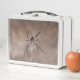A lunch box featuring a photo of a spider in a web.