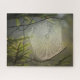 A photograph of a spider web glistening in the morning dew adorns this puzzle.