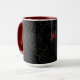 red and black mug with silver webs and red spider