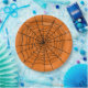 The web is simply drawn. The background has several shades of orange, making it all a bit more lively.