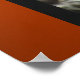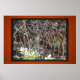 This is a Dean Johnson Fine Art design poster showing a spider web and morning dew in cool lighting, with a black border and an orange background, and on matte value poster paper. Gracias for supporting my Zazzle store.