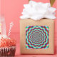 A geometric fractal image with an colorful optically challenging design in blue, turquoise yellow,red, green and pink by Objowl.