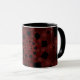 This colorful fractal coffee mug has bright and vibrant rainbow colors such as burgundy and black. These mugs have several different colors to choose from for the inside and handle of the mug. Also, you can choose from the style and size of these mugs. These mugs are great for kitchen and office use.