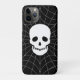 A dramatic vector designed graphic skull and spiderweb in a stark Gothic style. Its template options allow you to change the background color, add text and filter the artwork.