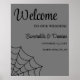 Welcome guests to your wedding in style with this poster that's perfect for gothic style weddings with its spiderweb graphic. Black text is set against a steel gray background.