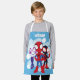 Great color and even though I ordered the kid size, it covers well enough to use during the holidays. I am not a big woman and prefer a shorter apron. I stand 5"6" and the length of the garment goes to mid-thigh. The tie straps fit well at my waist and even though there is no neck strap adjustment, the opening is plenty big enough. I am happy with the size and fit. I am sharing my apron with my 10 year old grandson, too! The color is vibrant and looks good, as shown on the website. The stitching looks strong and reinforced. Photographed is front side and back side of the apron, reinforced straps and coloring. My phone camera may not be the best at showing the details.