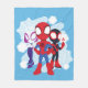 Spidey and His Amazing Friends | Check out Spidey, Ghost-Spider, and Spin together in front of a webbing background.