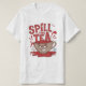 This fun and cheeky design features a mischievous teacup with a sly grin, perfectly capturing the playful essence of spilling some juicy gossip. With bold, textured lettering in vibrant red, "SPILL THE TEA" bursts out with energy, accompanied by splashes of tea for added flair. The overall vibe is lighthearted yet bold, making it a great statement piece for those who enjoy stirring up some fun in their conversations. Ideal for casual wear or sharing some sassy vibes.
