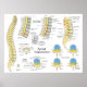 Illustrations of spinal degeneration of the cervical and lumbar spine. Disc herniation of the cervical and lumbar spine. Phases of spinal degeneration. Labeled cervical and lumbar vertebrae.