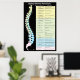 Spinal Nerve Function Poster. The poster list the effects of nerve interference on body areas and possible symptoms associated. Symptoms from interference to the nervous system are listed by spinal level from the cervical vertebrae to the sacrum.