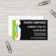 This modern business card design features a silhouette of a person with colorful lateral spine and practice information on the front. "Customize it!" to change office hours text on the back.