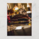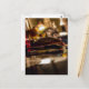A postcard with a photograph of a vinyl record playing in a colorful room.