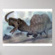 Spinosaurus was the largest meat-eating dinosaur known to science. It was also the only dinosaur that shows strong evidence of being aquatic, having had webbed toes, and solid bones. It may have used the large sail on its back to help keep it warmer when in the water. This print is of a painting done by paleo-artist, Christopher DiPiazza