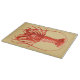 A costal themed cutting board with a bright orange spiny lobster. Perfect for a seaside vacation home or any lobster lover!