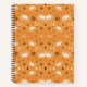Spiral-bound notebook with an orange cover, featuring a pattern of white sheep, black and orange pumpkins, and small stars. The design is playful and whimsical.