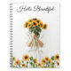 The cover art of the notebook features a beautiful sunflower in full bloom, with vibrant yellow petals contrasting with the white background. The details of the green leaves and the dark center of the sunflower are meticulously represented, creating a sense of realism and natural beauty. The simple, elegant composition highlights the beauty and delicacy of this iconic flower, perfect to add a touch of joy and freshness to your daily notes.