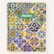 Mexican, Moroccan, Sicilian Mediterranean green tiles notebook. Chic floral botanical citrus garden pattern inspired by the summer bright italian themed art of majolica Sicilian ceramic tiles in pink yellow and blue. A fun style bright design for home decor, clothes, mobile and Ipad cases, invitations and much more. You can change all text colors and fonts, click to customize further underneath the text customisation area this will take you into the design tool. A unique gift for birthdays, holidays and any special occasion. Whether for valentines day, Christmas or as a gift in general it makes a great gift idea