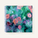 Bright pastel-colors of abstracted Nigella flowers on both covers of this notebook.