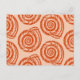 Postcard in a block print pattern, based on a spiral seashell, in deep coral orange on a pastel coral orange / apricot background