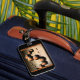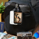 Go for a custom luggage tag designed with a digitally altered photograph of terra cotta globe shaped wind chimes set in moody lighting. Click "Customize" to add text to the front in a typeface style, size, and color you like on the front.