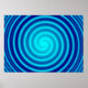 A vibrant neon blue gradient of royal blue or cobalt blue in an abstract of circular spirals in a twist of soft blue colors creating an illusion of a hypnotic and dizzying design.