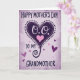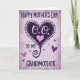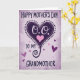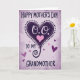 This card features a large deep-purple heart centered on a light lavender, softly textured background, setting a gentle, affectionate mood ❤️. A dashed pink outline traces the heart, with a ring of dark dot accents around it, giving the shape extra texture and warmth. Inside the heart, two curving “O” shapes sit side by side like a cozy pair leaning toward each other, with a small soft-pink heart tucked near the bottom. A curling spiral tail extends from the lower edge of the heart, like a decorative flourish that adds motion to the scene. Across the top, the message “HAPPY MOTHER’S DAY” appears in uppercase, dark purple letters, slightly uneven in a friendly, casual style. Beneath the heart, “TO MY GRANDMOTHER” is written in the same dark purple uppercase lettering, centered and spaced to balance the design 🌼. Small hearts in shades of pink and purple are scattered around the main heart, and the background edges look lightly worn with deeper purple shading.
