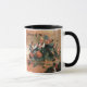 White and black 11 oz. ringer combo mug with an image, on both sides, of a vintage painting titled “Spirit of ‘76” (1891 version) by Archibald Willard.